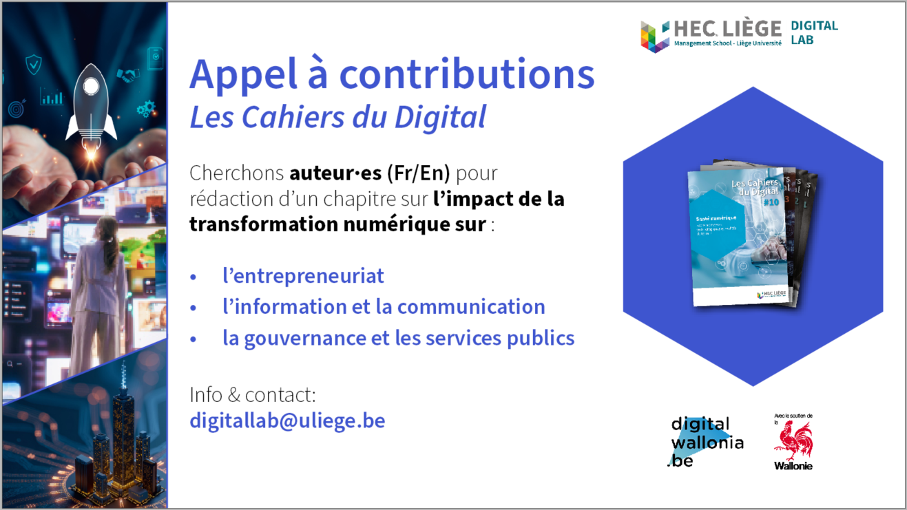 Pour les futurs numéros des Cahiers du Digital, le Digital Lab est à la recherche d’auteur·es souhaitant rédiger un article sur l’un des 3 thèmes suivants. Nous invitons chercheurs, praticiens, experts et acteurs du terrain à partager leurs analyses, études de cas et réflexions critiques.
